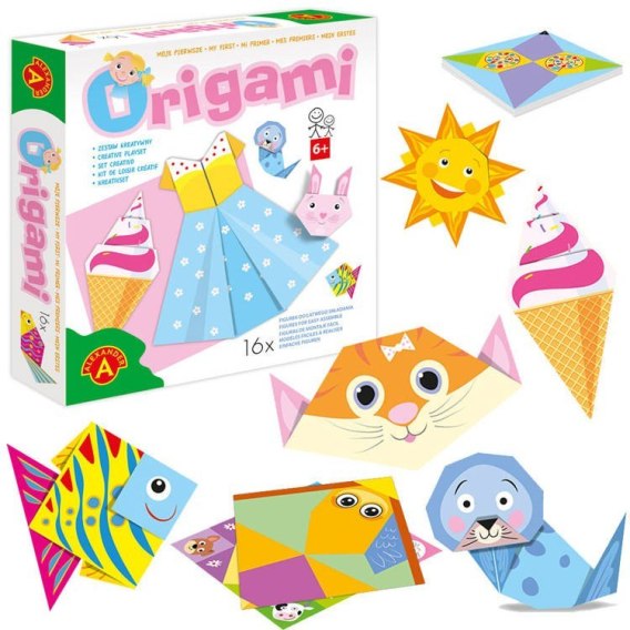Doskonały wstęp dla każdego dziecka do klasycznej sztuki origami z jednej kartki papieru. W zestawie znajduje się 30 kolorowych arkuszy papieru do samodzielnego złożenia z zaznaczonymi liniami gięcia (po dwa arkusze na jeden model). Dzięki odpowiednio zadrukowanemu projektowi graficznemu otrzymamy wyjątkowe, kolorowe ubranka oraz zwierzątka. Każdy model posiada obrazkową instrukcję montażu (bez konieczności czytania) jak również oznaczenie stopnia trudności.