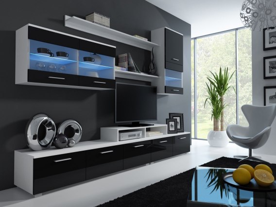 Meblościanka LOGO II 250/42/190 biały/czarny połysk