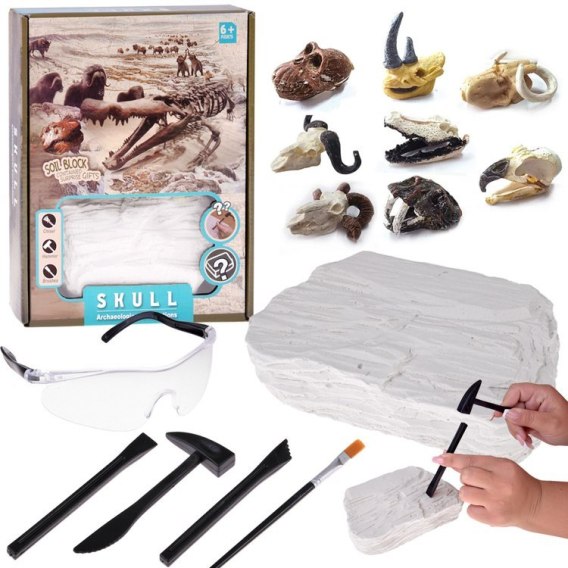 Marzysz o tym, by poczuć dreszczyk emocji jak prawdziwy archeolog? Ten zestaw to Twoja szansa! Ukryta w gipsowym bloku niespodzianka czeka, byś ją wydobył. Ale co to takiego? To tajemnicza czaszka, która skrywa w sobie sekret prehistorii! Jaki gatunek do niej należy?