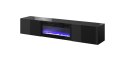 Szafka RTV SLIDE 200K z kominkiem elektrycznym 200x40xH37 cała w czarnym połysku